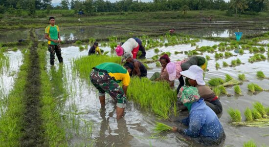 Belu – Satgas Pamtas RI–RDTL Sektor Timur Yonarmed 12 Kostrad melalui Pos Turiskain melaksanakan kegiatan menanam padi bersama masyarakat di Desa Maumutin,
