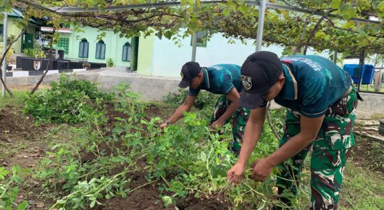 TTU – Satgas Pamtas RI–RDTL Sektor Timur Yonarmed 12 Kostrad melalui Pos Motaain melaksanakan kegiatan ketahanan pangan berupa panen kacang dari kebun