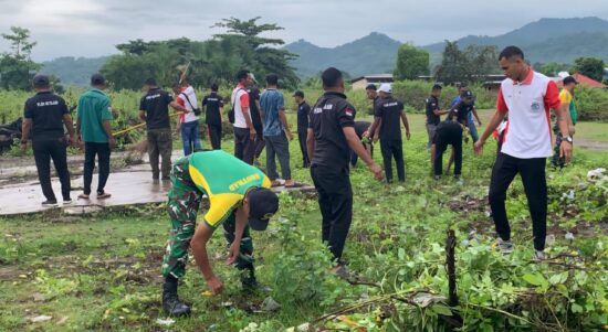 Belu – Personel Pos Motaain Satgas Pamtas RI–RDTL Sektor Timur Yonarmed 12 Kostrad melaksanakan kegiatan karya bakti bersama karyawan PLBN Motaain dengan