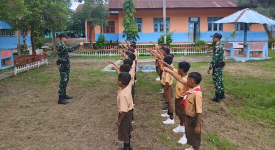 Yonarmed 12 Kostrad Pos Nunura Tanamkan Disiplin PBB kepada Siswa SDN Sekutren