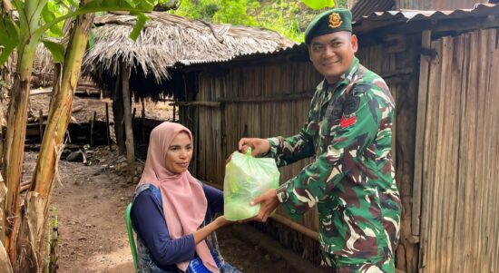 Belu – Satgas Pamtas RI–RDTL Sektor Timur Yonarmed 12 Kostrad melaksanakan kegiatan pembagian sembako kepada warga kurang mampu di Desa Dualaus, Kecamatan