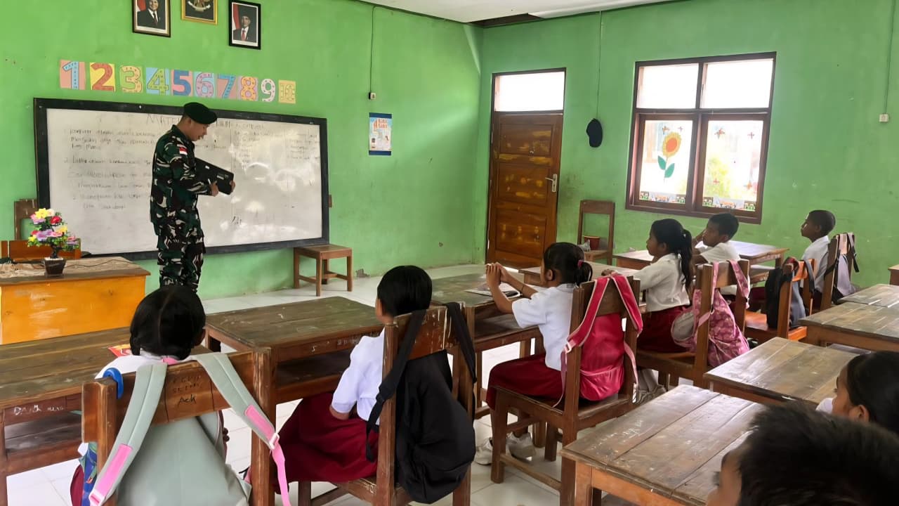 Belu – Satgas Pamtas RI–RDTL Sektor Timur Pos lookeu kembali menunjukkan kepeduliannya terhadap dunia pendidikan di wilayah perbatasan dengan melaksanakan kegiatan pengajaran dan pendidikan pengenalan komputer di SDI Lookeu, Kecamatan Tasifeto Barat, Kabupaten Belu, NTT. Kegiatan ini menjadi bagian dari upaya peningkatan literasi digital bagi para pelajar yang berada di wilayah perbatasan, Senin (24/11/2025).