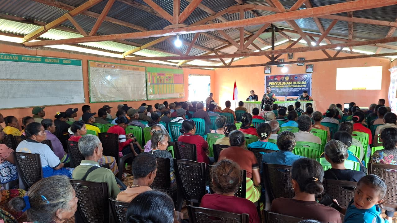 TTU – Satgas Pamtas RI-RDTL Sektor Barat Yonarhanud 2 Kostrad berikan pemahaman dan tingkatkan pengetahuan melalui penyuluhan hukum kepada warga Desa Saenam, Kecamatan Miomaffo Barat, Kabupaten TTU. Sabtu (07/02/2026).