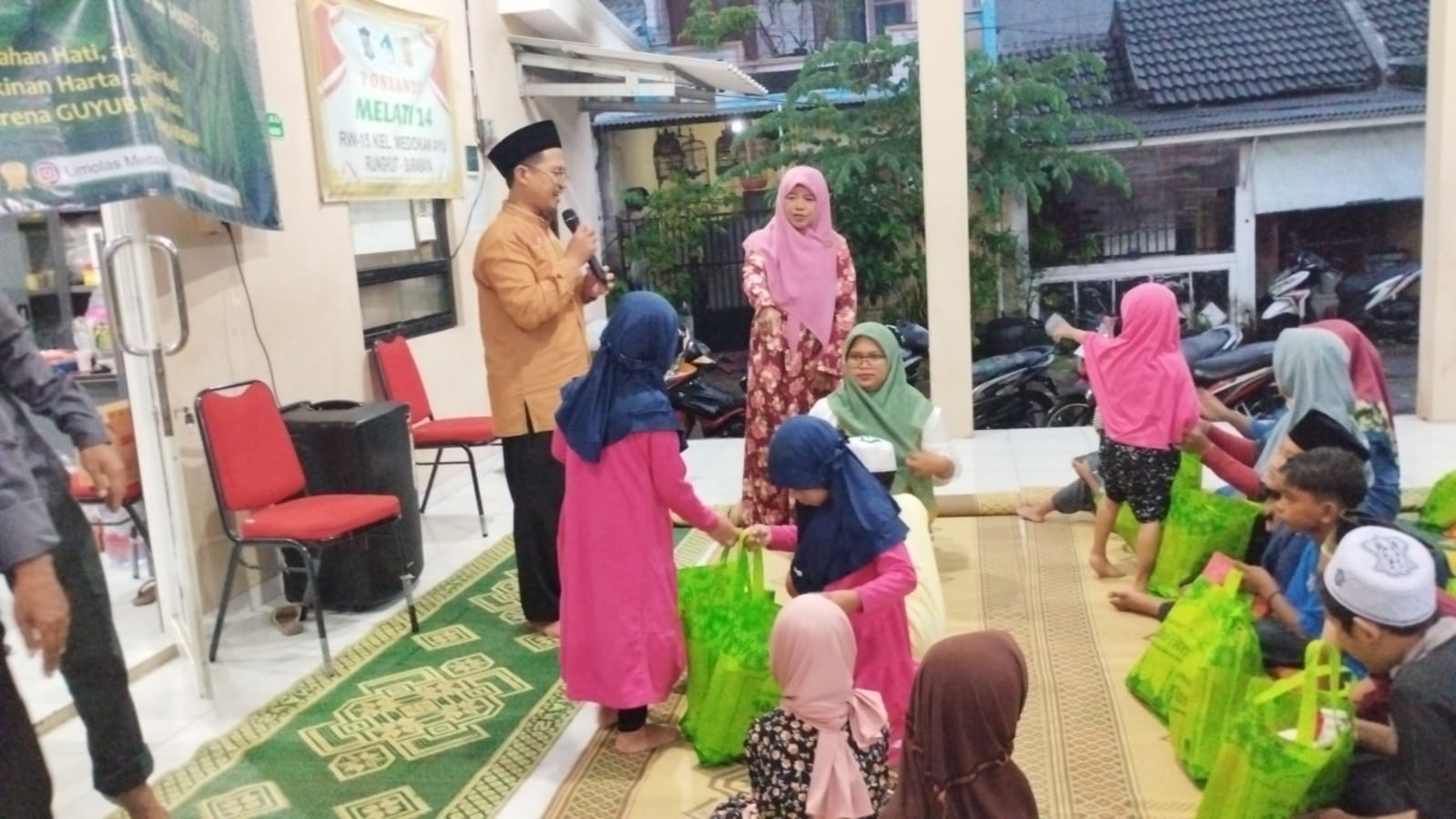 Ustadz Bagus Subuh Hadi, SE, Bidang Kerohanian Sosial Budaya dan Pemuda RW15 sebagai pemandu acara Santunan tersebut, “kami untuk tahun ini menyediakan puluhan paket dan santunan untuk Anak Yatim di wilayah RW15 yang kami undang untuk datang di Pendopo Balai RW15 sekaligus mendengarkan dongeng yang dibawakan oleh Kak Joe tentang kebaikan dan kejujuran agar nantinya anak² dapat mengambil hal positifnya dari yang disampaikan hari ini”, jelasnya. Ia menambahkan juga bahwa tahun ini 2025 kami sengaja mengundang Anak Yatim ke tempat kami, beda dengan tahun sebelumnya kami datang ke Yayasan Yatim Piatu memberikan santunan dengan mendatanginya.
