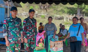 TTU – Satgas Pamtas Satgas Pamtas RI–RDTL Sektor Barat Yonarhanud 2 Kostrad Pos Wini kembali menunjukkan komitmennya dalam mendukung kesejahteraan masyarakat perbatasan, personel Pos Wini melaksanakan pembagian paket sembako berupa beras, gula, dan roti serta penyajian bubur kacang hijau untuk masyarakat di Desa Wini, Kecamatan Insana Utara, Kabupaten TTU, Senin (24/11/2025).