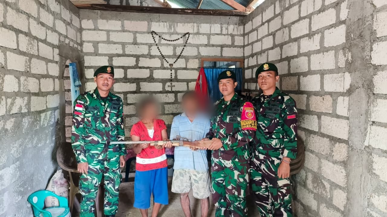 Wujud Kepercayaan Warga, Satgas Pamtas Yonarhanud 2 Kostrad Terima Satu Pucuk Senjata Api Rakitan