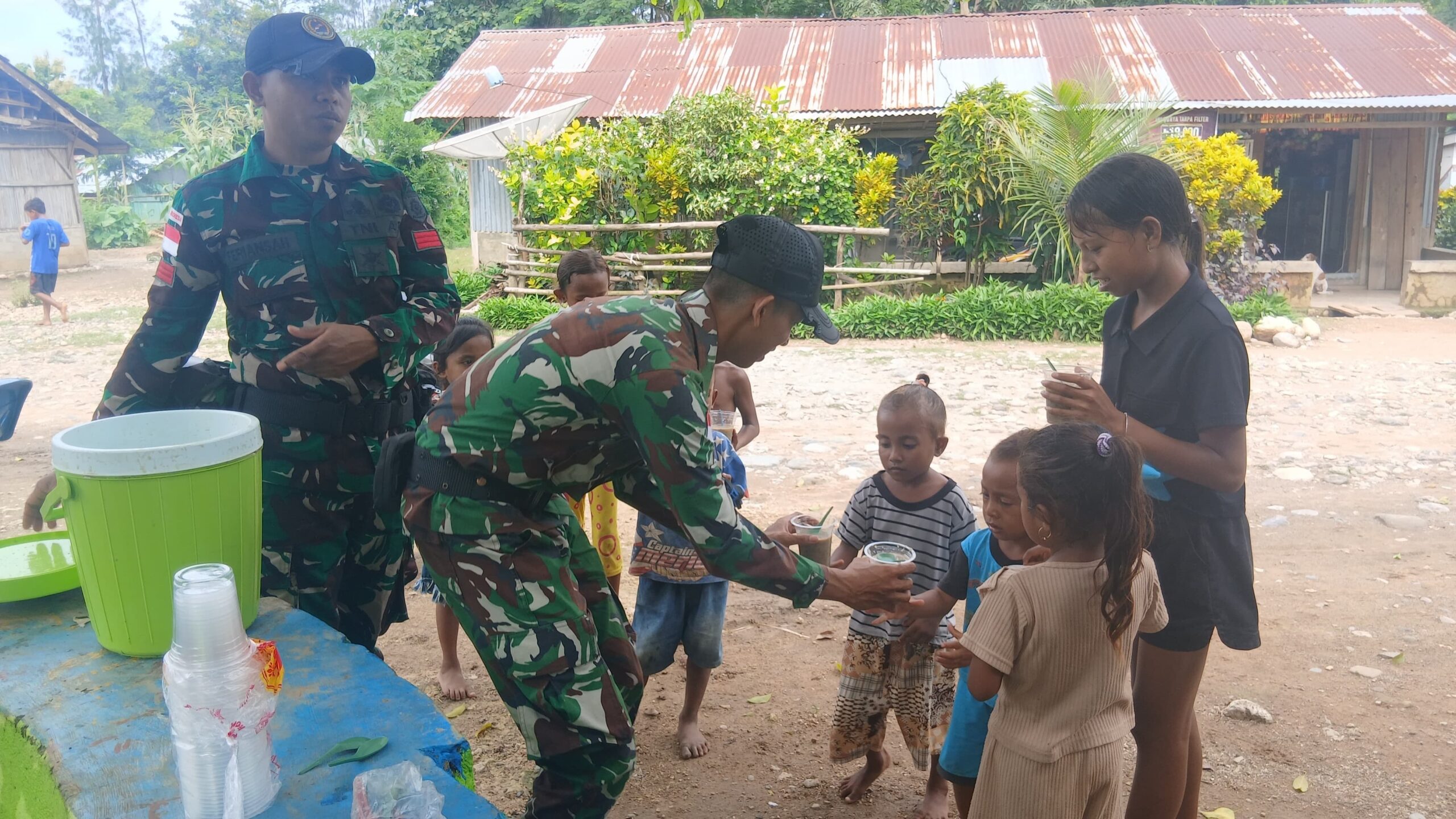 Danpos Nunura Letda Arm David Partogi Sagala menyampaikan bahwa kegiatan ini bertujuan membantu pemenuhan asupan gizi anak-anak sekaligus mempererat hubungan antara TNI dan masyarakat. “Melalui kegiatan sederhana ini, kami berharap dapat membantu mendukung tumbuh kembang anak-anak serta menumbuhkan rasa kebersamaan dan kepedulian di wilayah perbatasan,” ungkapnya.