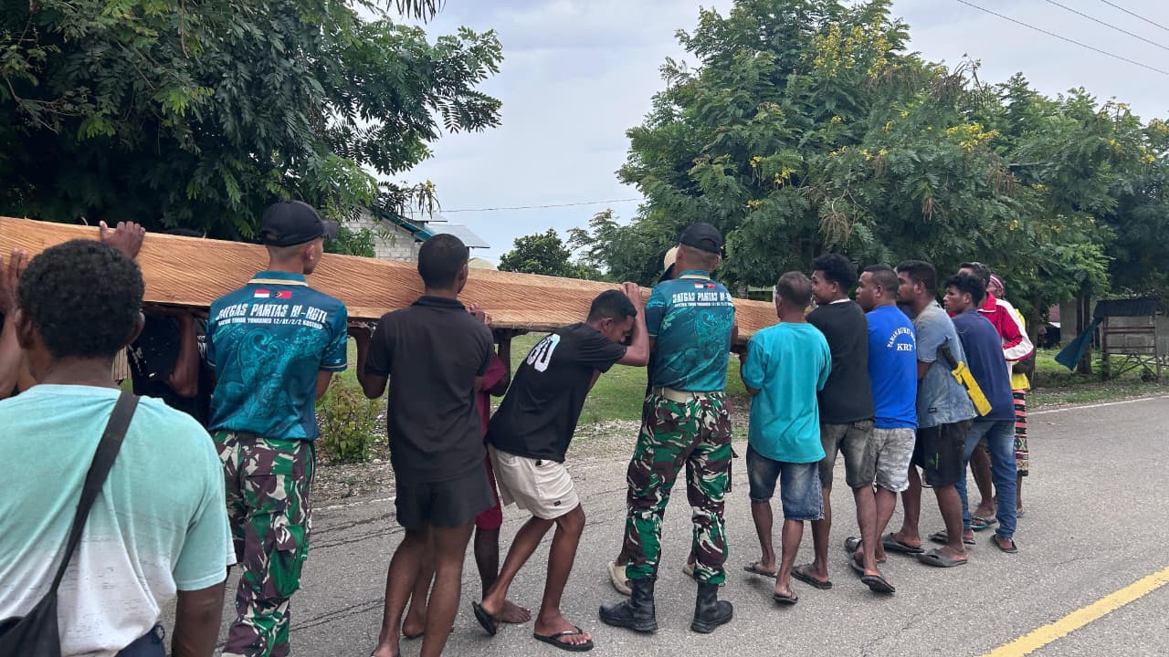 Dalam kegiatan tersebut, personel Pos Haslot bersama warga bahu-membahu memindahkan berbagai material bangunan seperti kayu, batu, dan bahan lainnya yang akan digunakan untuk pembangunan rumah adat. Semangat gotong royong yang terjalin antara prajurit dan masyarakat menjadi bukti nyata kedekatan TNI dengan warga di wilayah perbatasan.