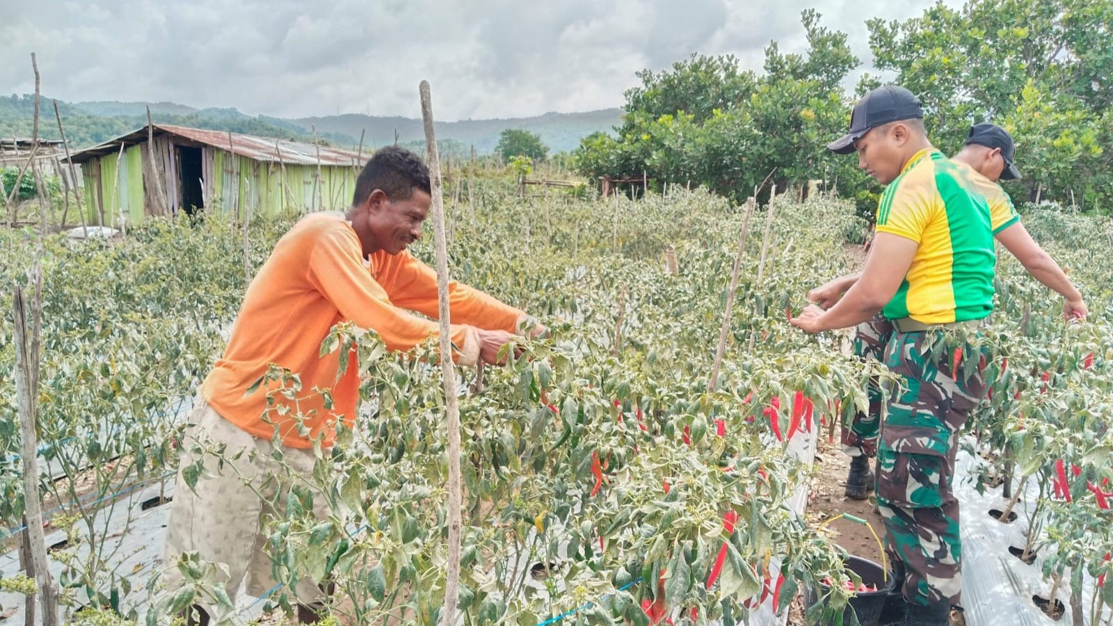 Dengan penuh semangat, prajurit dan petani setempat memanen cabai yang telah siap dipetik. Hasil pertanian tersebut merupakan salah satu komoditas penting yang menopang perekonomian warga. Kehadiran personel Satgas di tengah-tengah kebun tidak hanya membantu mempercepat proses panen, tetapi juga menjadi penyemangat tersendiri bagi para petani dalam meningkatkan produktivitas mereka.