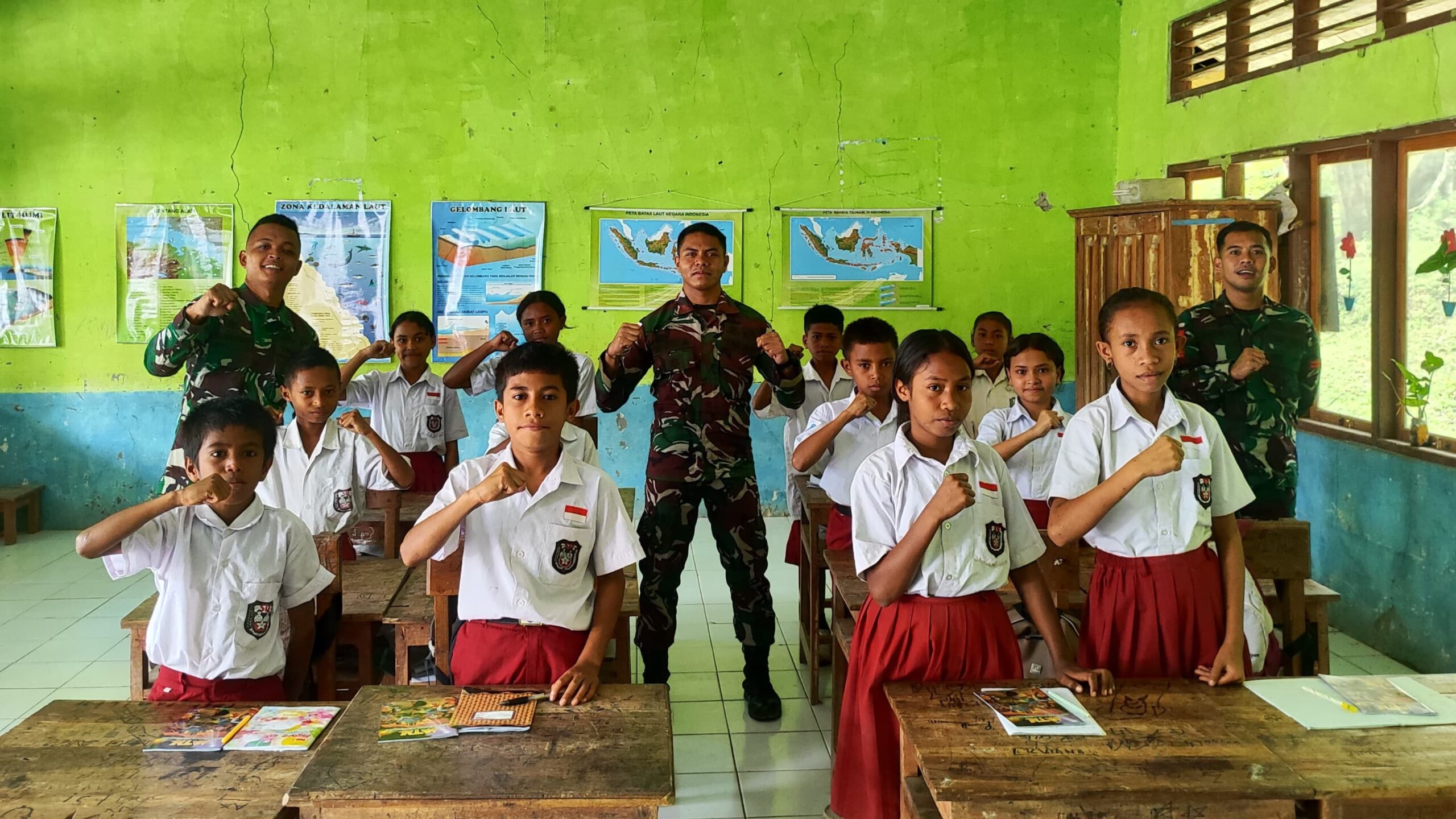 Proses pembelajaran berlangsung dengan penuh kehangatan dan interaktif. Para siswa tampak antusias mengikuti setiap materi yang diberikan, serta aktif menjawab pertanyaan yang diajukan oleh personel Satgas. Pembagian buku bacaan menjadi momen yang paling dinantikan, terlihat dari raut wajah bahagia para siswa saat menerima buku yang diharapkan dapat menambah wawasan serta menumbuhkan minat baca sejak dini.