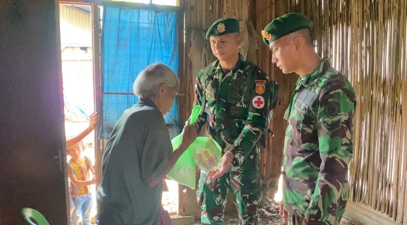 Belu – Satgas Pamtas RI–RDTL Sektor Timur Yonarmed 12 Kostrad melaksanakan kegiatan Jumat Berkah dengan pembagian sembako kepada para lanjut usia (lansia) di desa binaan Desa Maumutin, Kecamatan Raihat, Kabupaten Belu, Nusa Tenggara Timur. Kegiatan ini merupakan wujud kepedulian dan perhatian Satgas terhadap masyarakat, khususnya para lansia yang membutuhkan dukungan di wilayah perbatasan, Jumat (30/01/2026).