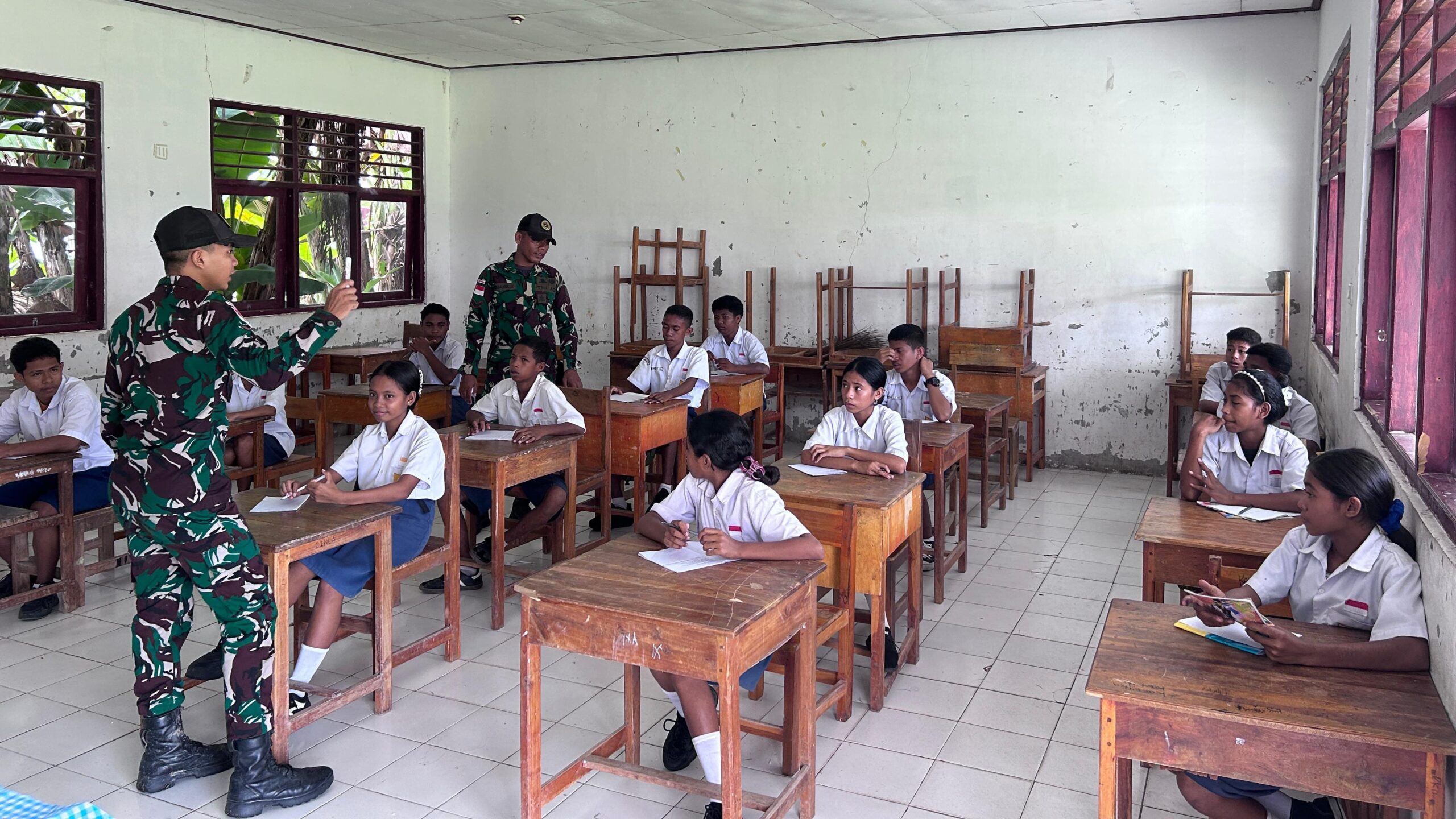 Dalam kegiatan tersebut, para siswa tampak antusias mengikuti materi yang disampaikan, mulai dari pemahaman tentang pentingnya persatuan dan kesatuan, hingga peran generasi muda dalam menjaga keutuhan Negara Kesatuan Republik Indonesia. Interaksi yang hangat antara prajurit dan pelajar turut menciptakan suasana belajar yang menyenangkan dan penuh semangat.