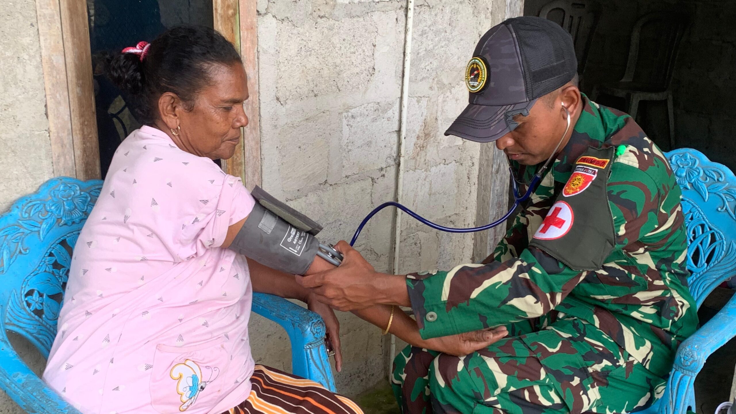 Belu – Personel Pos Lakmars Satgas Pamtas RI–RDTL Sektor Timur Yonarmed 12 Kostrad melaksanakan pelayanan kesehatan keliling bagi masyarakat di Kampung Baru, Desa Henes, Kecamatan Lakmanen Selatan, Kabupaten Belu. Kegiatan ini merupakan bentuk kepedulian prajurit terhadap kondisi kesehatan warga sekaligus upaya mempererat hubungan dengan masyarakat di wilayah perbatasan, Selasa (17/02/2026).