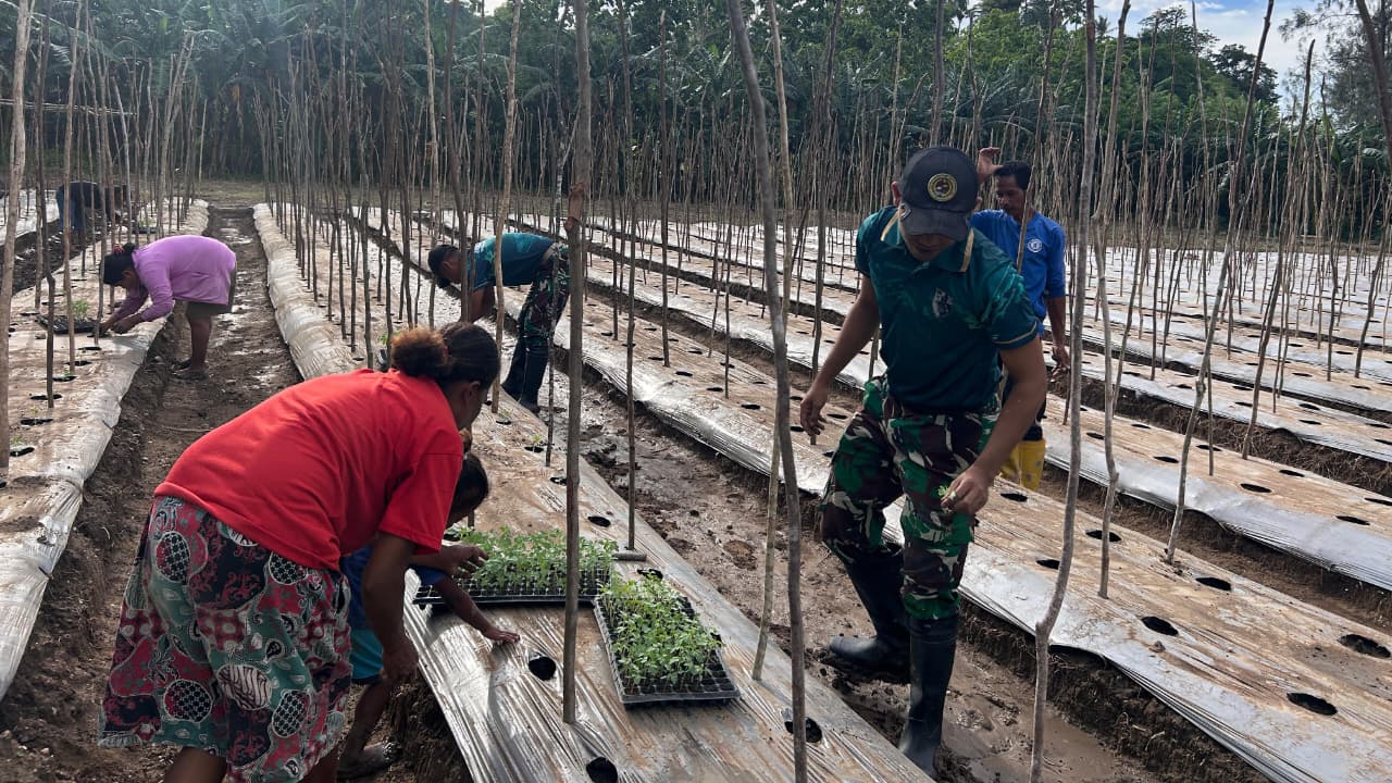Kegiatan tersebut berlangsung penuh semangat dan kebersamaan. Prajurit Pos Haslot bersama warga bahu-membahu mengolah lahan, menanam bibit tomat, hingga memberikan edukasi sederhana tentang perawatan tanaman agar hasil panen nantinya lebih maksimal. Suasana kekeluargaan tampak jelas dalam setiap proses, mencerminkan sinergi positif antara TNI dan masyarakat perbatasan.