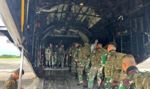 Bangka Belitung – Prajurit Yonif 501 Kostrad tiba di Bandara Depati Amir, Bangka Belitung menggunakan pesawat C-130 Hercules, untuk melaksanakan Latihan Gabungan TNI. Latihan ini digelar untuk meningkatkan kesiapsiagaan TNI dalam menghadapi berbagai ancaman serta menjaga keamanan wilayah strategis di kawasan Bandara Depati Amir, Selasa (18/11/2025).